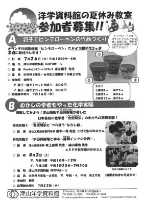 「津山洋学資料館夏休み教室係」 E-Mail: yougaku@city.tsuyama.lg.jp |